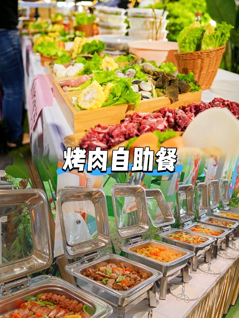 花园玻璃房+室外草坪:100平方米玻璃房搭配500平方米户外草坪,室内可容纳60人自助餐,户外草坪用于团建活动。该区域配置长条桌椅、户外蛋卷桌、电视、音响(支持唱K/会议)及洗手台,无惧风雨、暴晒或酷暑天气。